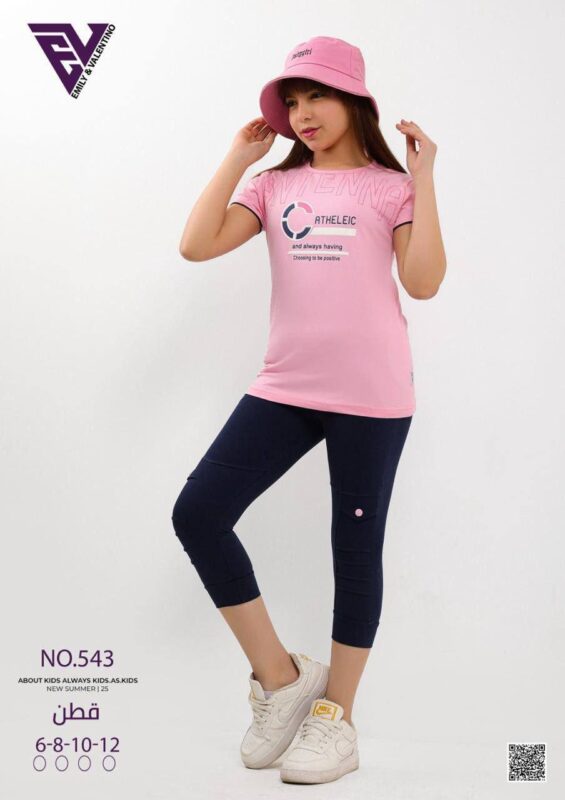 طقم بناتي تيشرت قطن وبنطلون كوريشه
